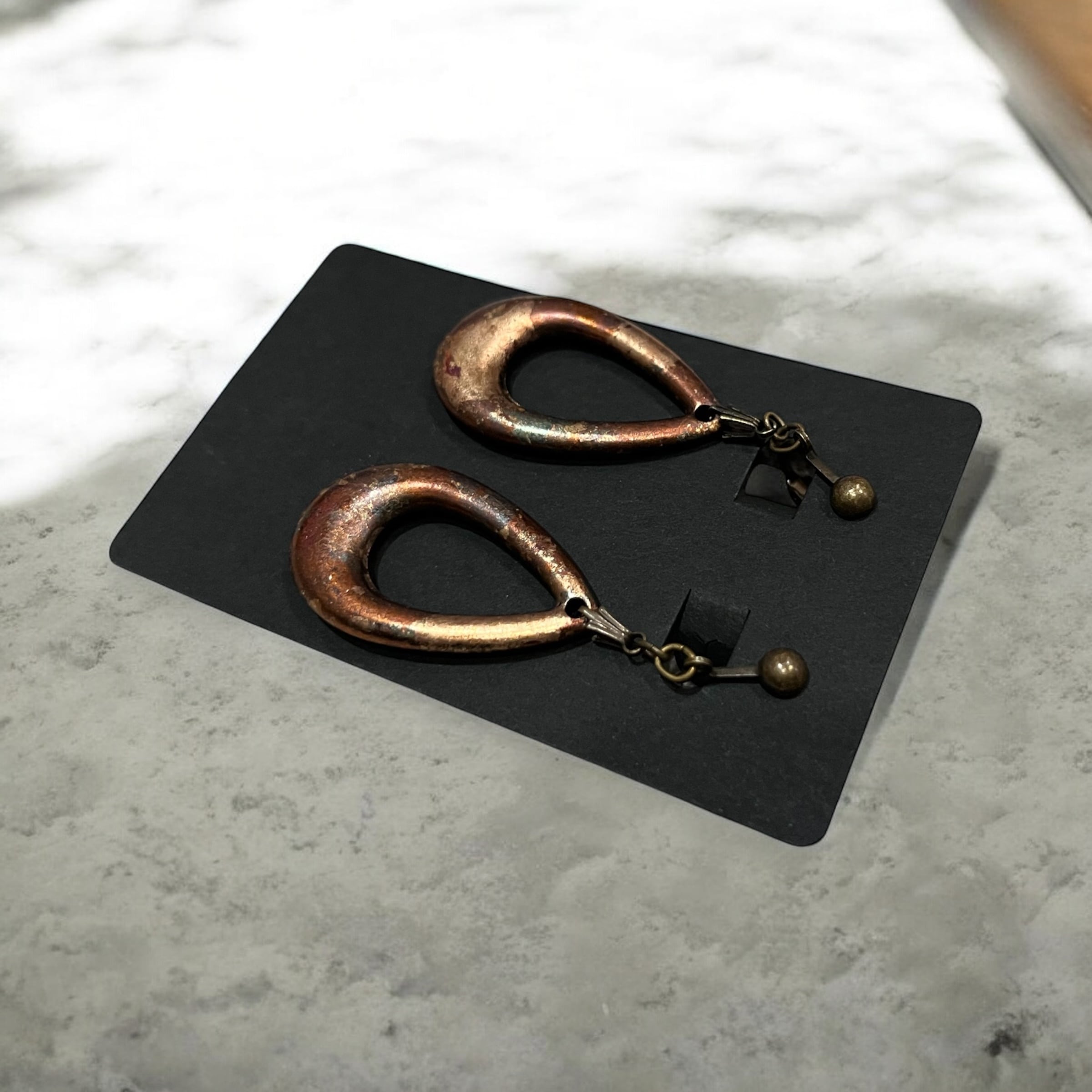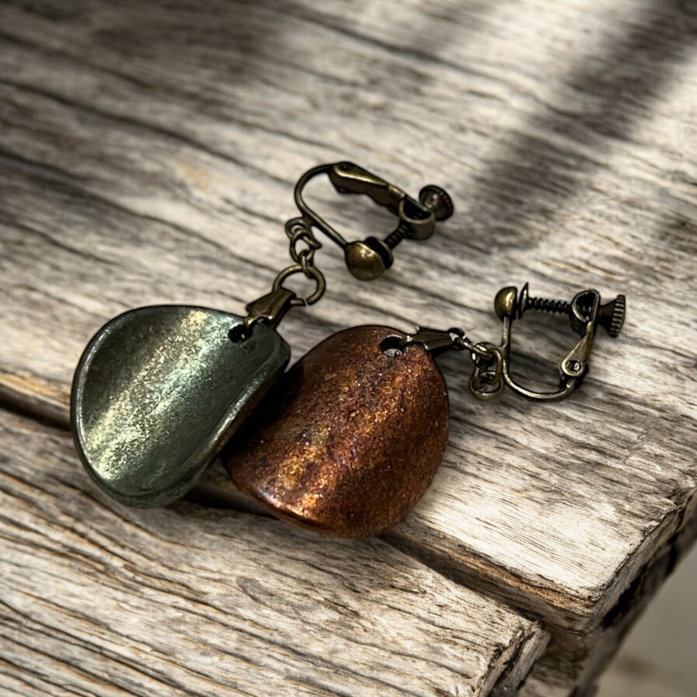 このイヤリングは、燻銀の箔を用いて日本の伝統的な美意識「寂び」を体現する商品です。